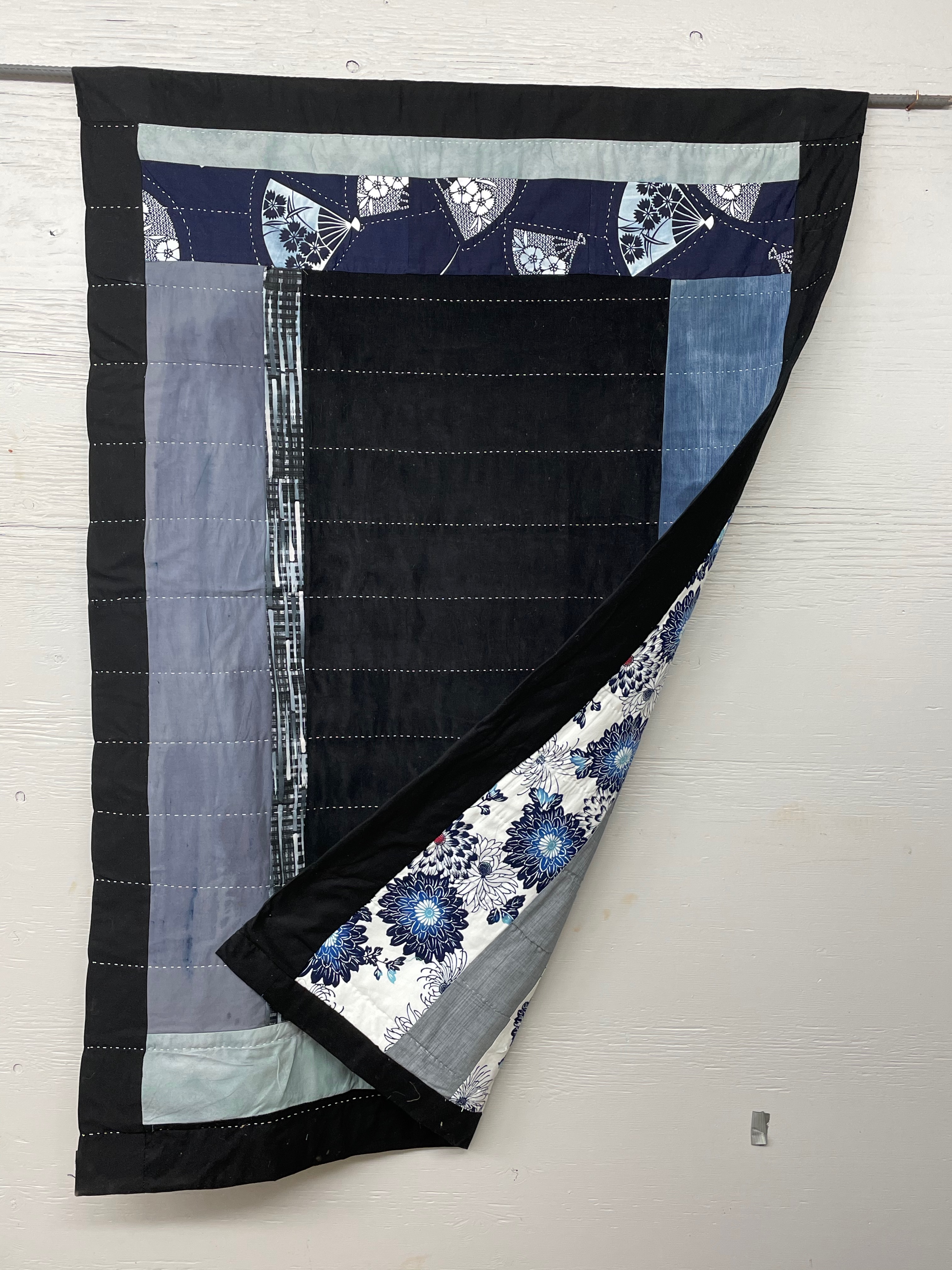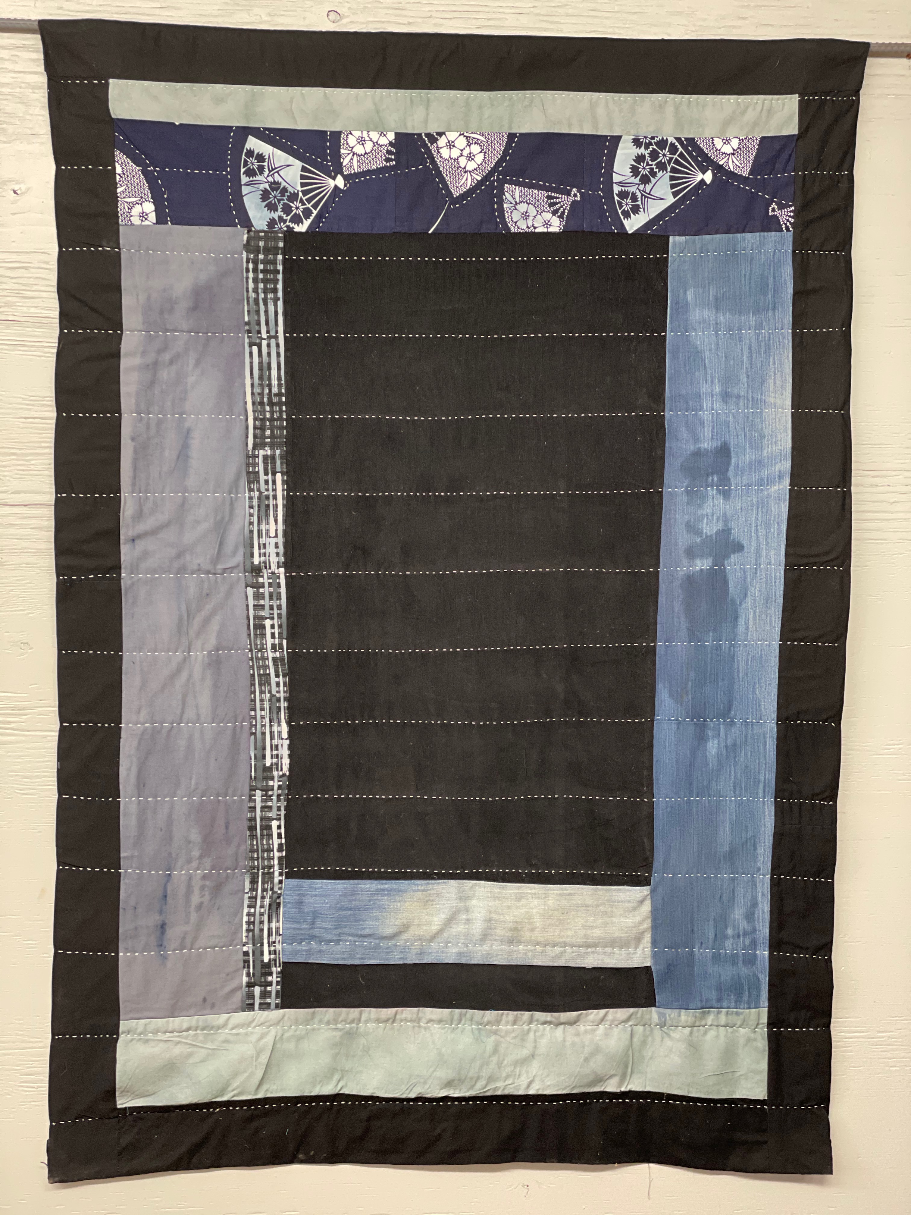 When I was 19 I went to Japan Machine pieced, hand quilted, used and new fabric, dye 60" H x 41" W, 2021